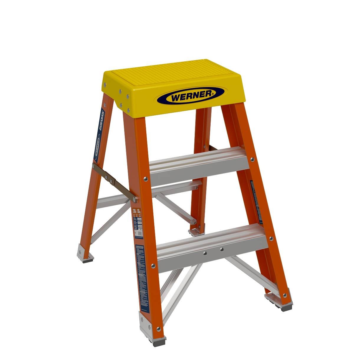 The 6202 Fiberglass 2-foot Step Stool has a duty rating of 300 pounds. The molded top provides a large standing platform for comfortable use. The feet feature a combination rail end shield and slip-resistant foot pads. The steps are slip resistant with the patented Traction-Tred® design and the bottom step features front and rear knee braces. Fiberglass rails are non-conductive for working near electricity.